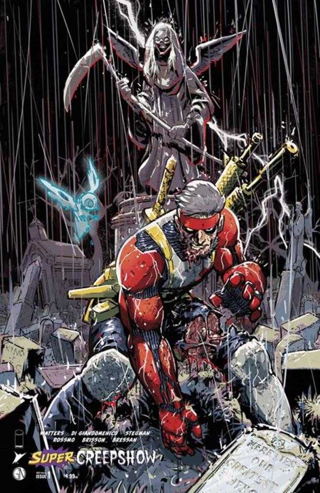 HIS ULTIMATE CREEPSHOW EXPERIENCE IS AN ABSOLUTE MUST-READ! Join the Creep in a special celebration of superheroes new, old, and very, very disturbed in what’s possibly already being called the most important comic book of the year! First, Dan Watters (Batman: Dark Patterns, Destro) and Carmine Di Giandomenico (Absolute Superman) plan a funeral for the world’s greatest superhero, but his return might be the worst thing that could ever happen! Then, Ryan Stegman (X-Men) and Riley Rossmo (The Moon is Following Us) introduce the world to the Grave Ghost, a superhero who must solve the case of...his own death! Finally, Ed Brisson (Wolverine: Old Man Logan) and Andrei Bressan (Dark Ride) unleash the chilling tale of what happens when a super serum gets injected into someone who may be more super VILLAIN than hero.